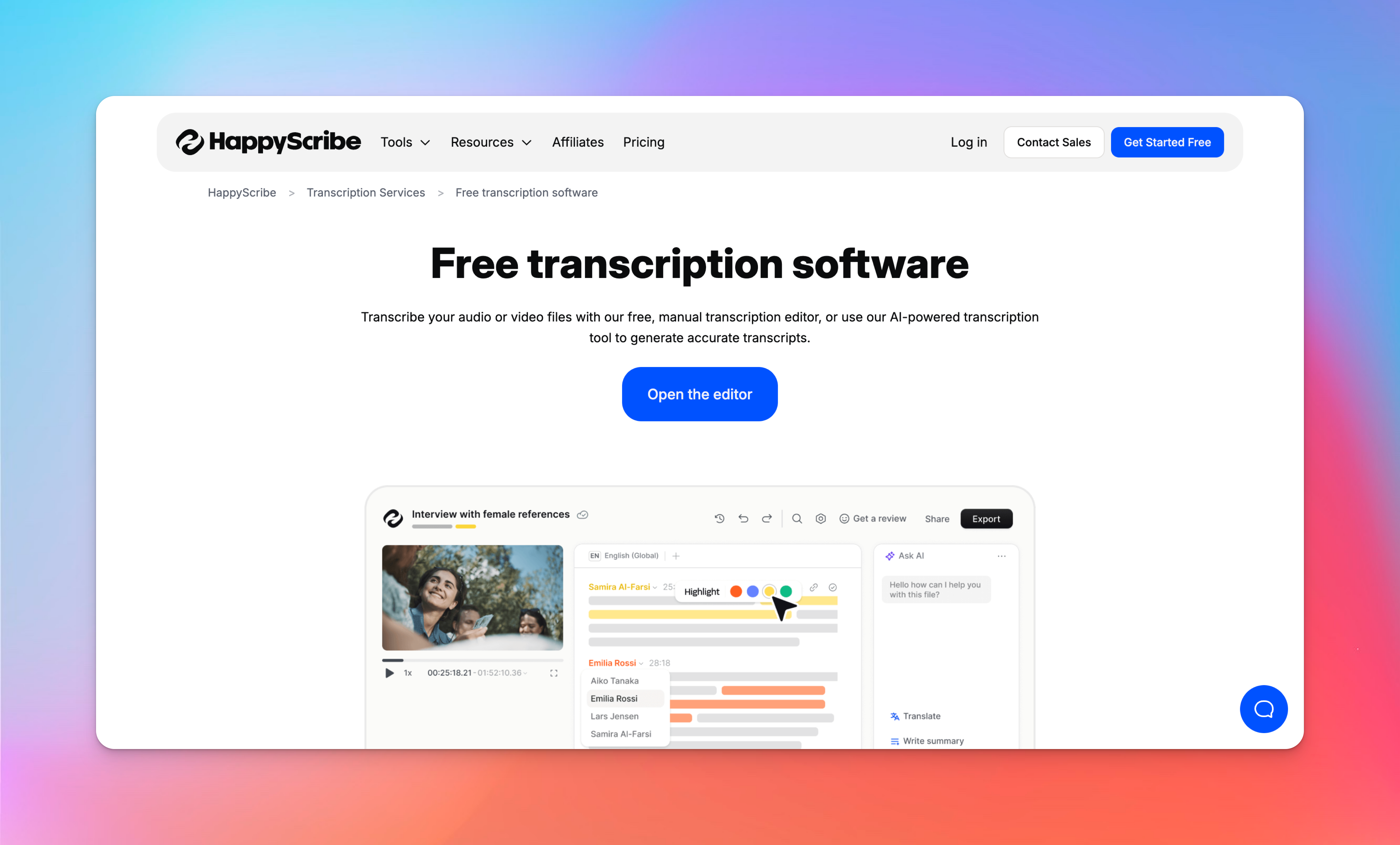 If your workflow depends on accuracy, security, and global adaptability, HappyScribe offers the strongest foundation for 2025 and beyond. It’s built for teams that treat transcription not as a step, but as part of a complete content process: dependable, extensible, and ready for professional standards.