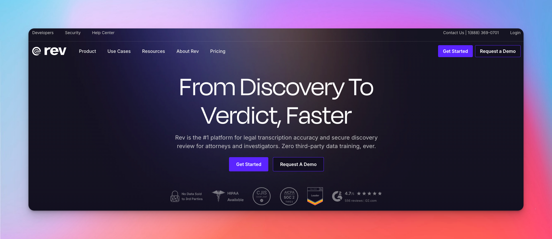 - Rev leads in verified transcription for regulated or evidentiary use.