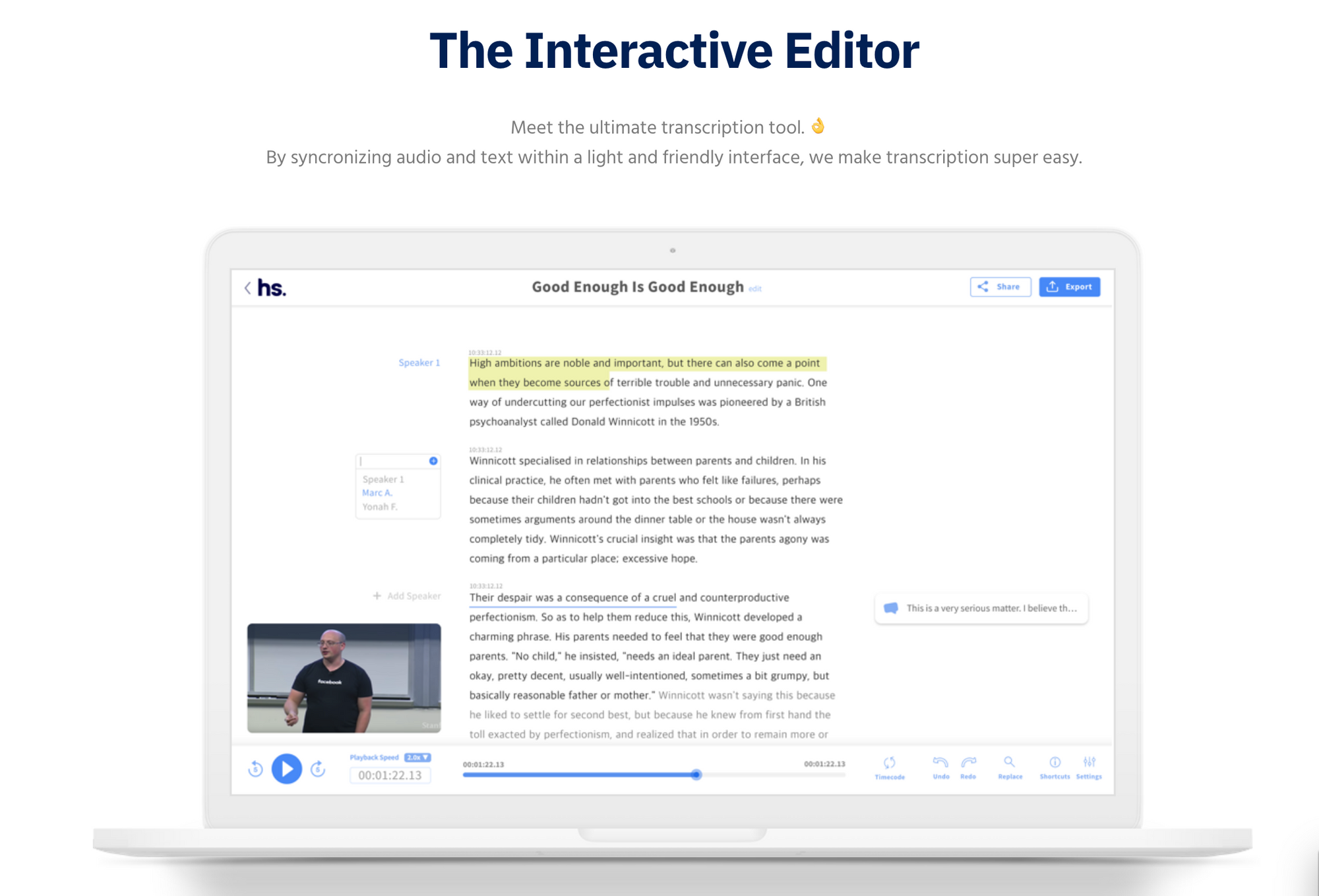Moreover, an automatic transcription of the lecture allows you to utilise the CTRL + F function to find topics quickly in the lecture that you want to review and understand better. Software, like HappyScribe’s Interactive Editor, will jump to an exact word or phrase in the recording and highlight the text as you listen. This way you can both listen and watch what the lecturer said.
