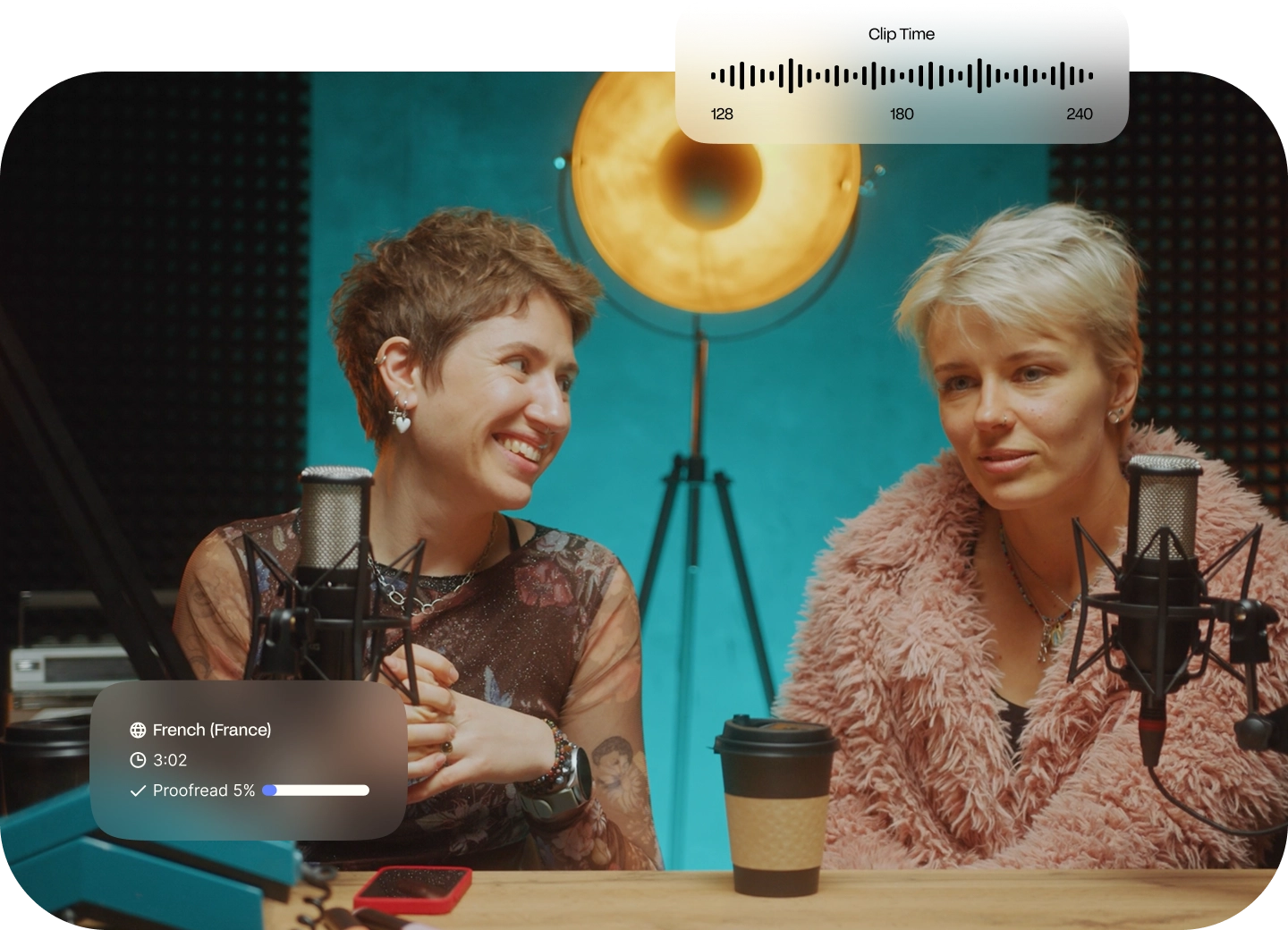 Break language barriers with multilingual subtitles and hyper-localized content. Whether it’s a pitch for a client, a product launch video or an internal update, HappyScribe makes sure that your communication lands with clarity.