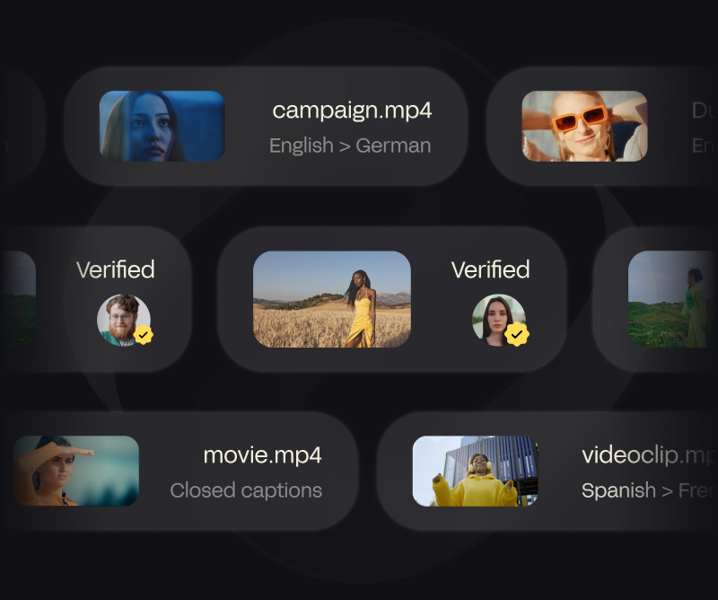 From translations to subtitles and dubbing. Make your video content accessible worldwide, fast.