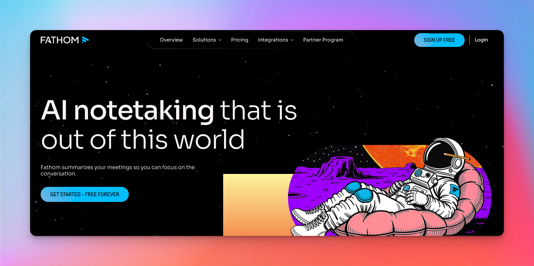 Fathom is an AI-powered meeting assistant that records, transcribes, and summarizes calls in real time. It’s built for companies whose primary focus is meeting documentation.