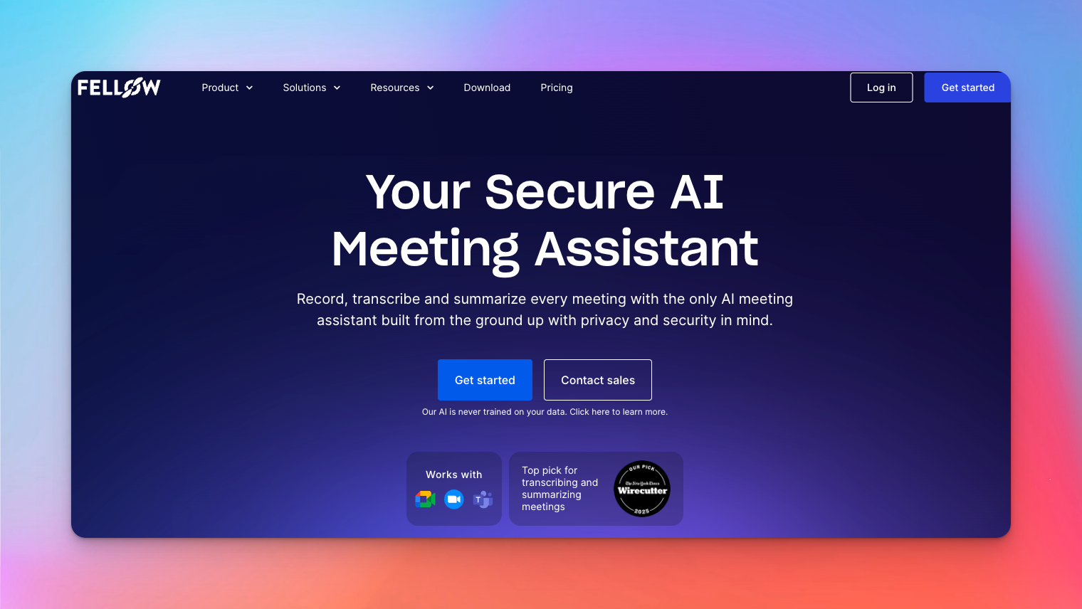 Similar to Fathom, Fellow mainly records and transcribes meetings and organizes them into structured notes. Its standout feature is the Ask Fellow chatbot, which acts as a second brain and knowledge base, without training on user data.