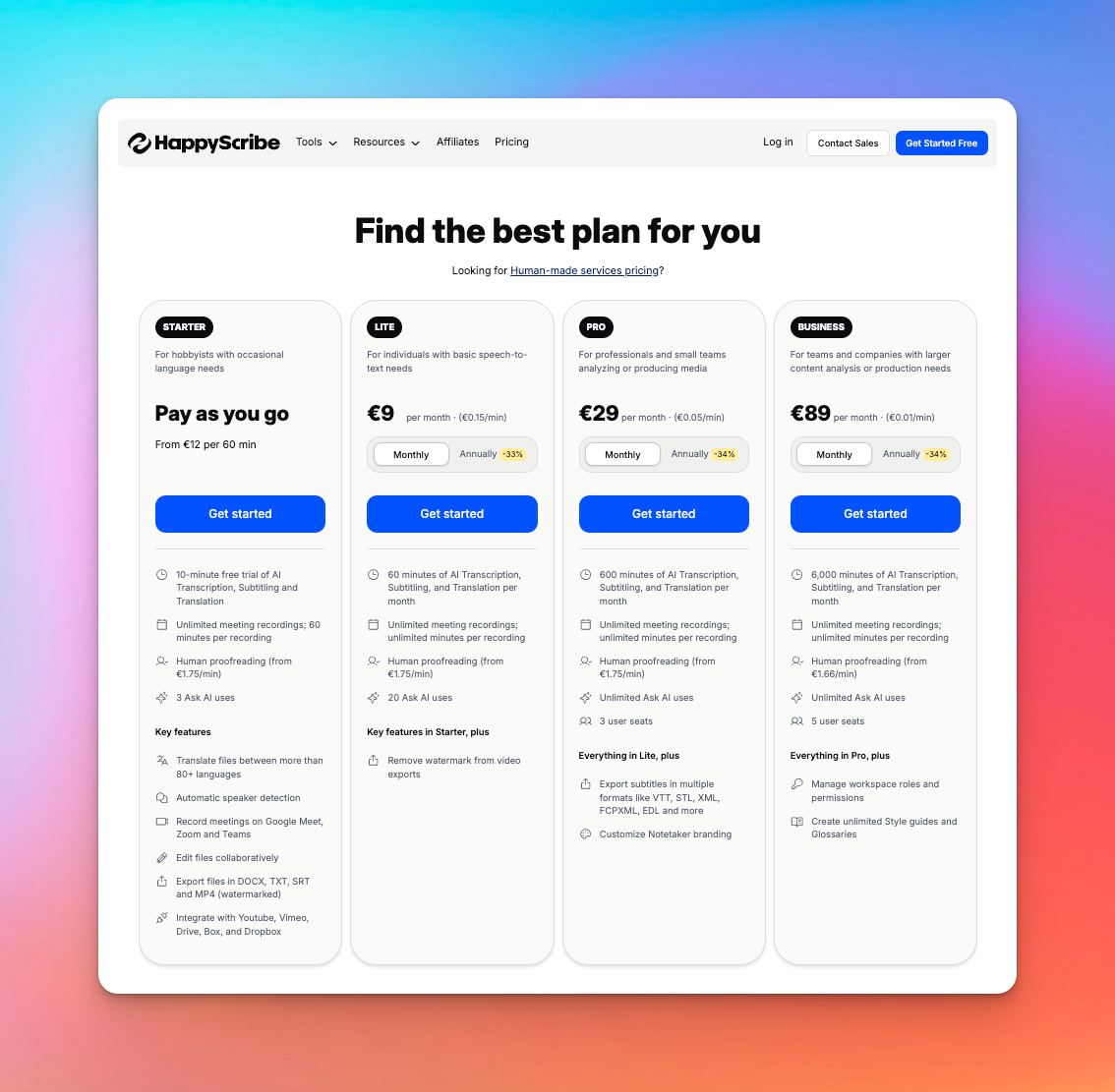 If you’re looking for an enterprise-ready platform that balances speed, accuracy, and data security, HappyScribe continues to be one of the most dependable options for businesses.