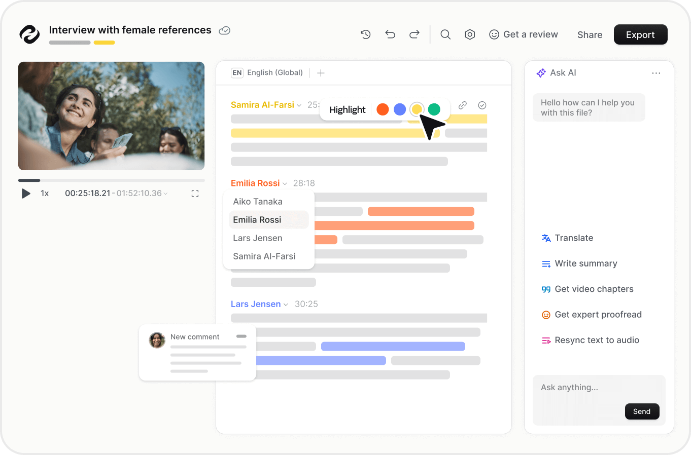From the dashboard, select your Zoom meeting file from your device or paste a public link. HappyScribe supports 60+ file formats (MOV, MP4, AVI, WMV...). Alternatively, you can connect your calendar to automate your AI note taking.